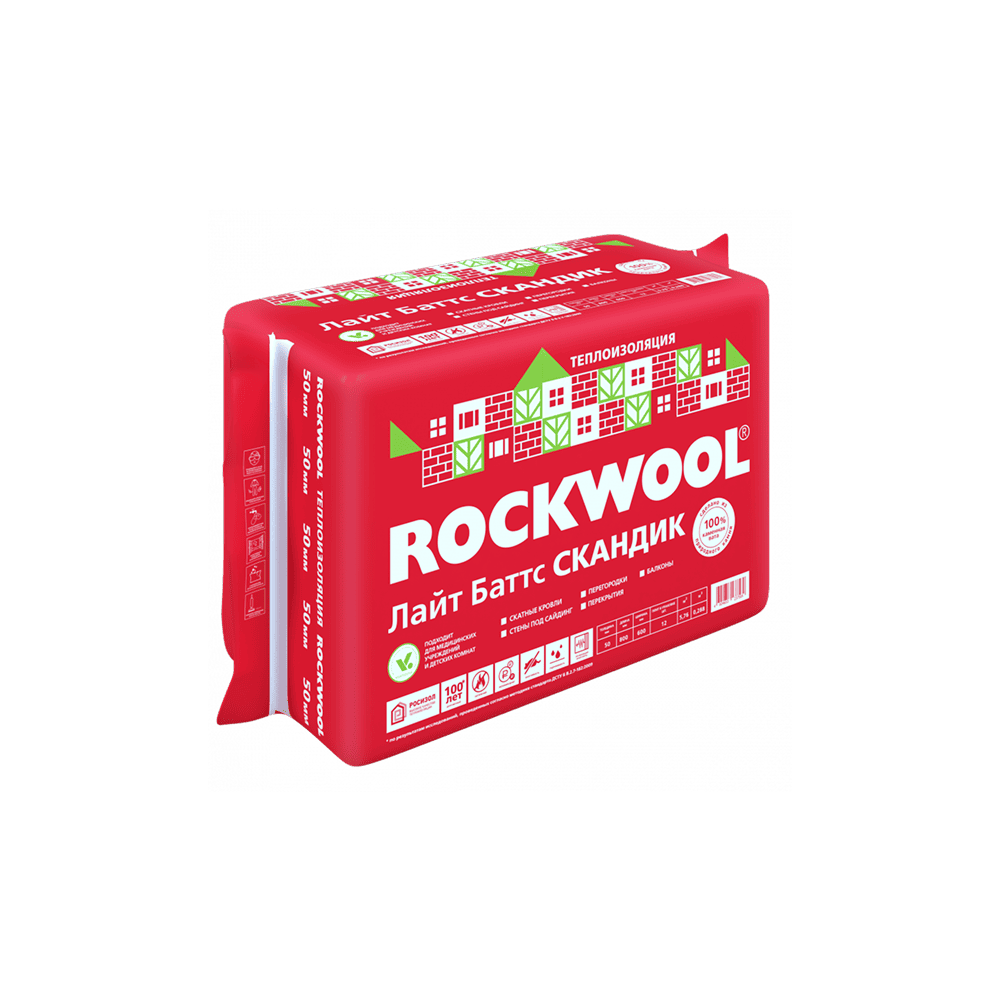 Базальтовый утеплитель ROCKWOOL (Роквул) ЛАЙТ БАТТС СКАНДИК 1000х600 50 мм