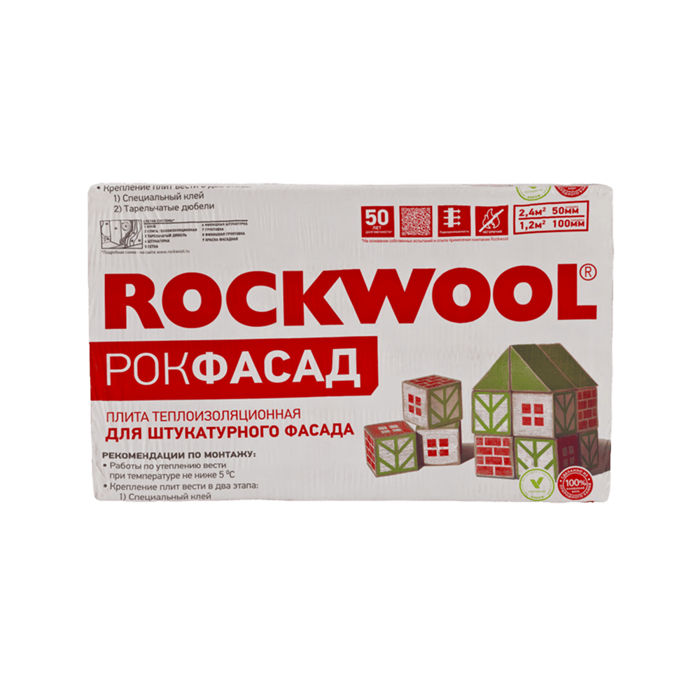 Базальтовый утеплитель ROCKWOOL (Роквул) РОКФАСАД 1000х600 50 мм