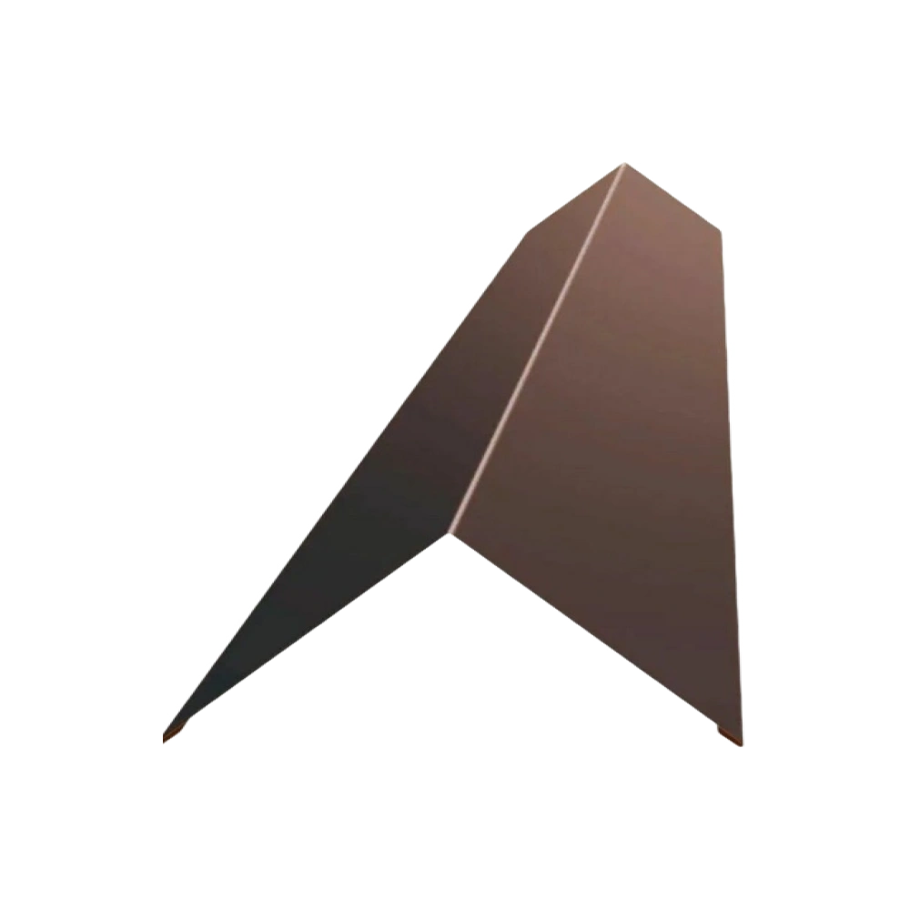 Планка конька используется для защиты от осадков верхнего ребра кровли, выступает в качестве завершающего элемента конструкции.