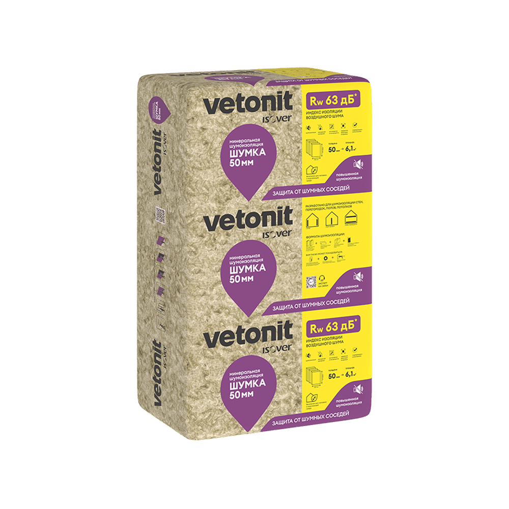 Шумоизоляция с повышенной упругостью ISOVER ШУМКА плита 610*1000*50мм / 6,1 м2