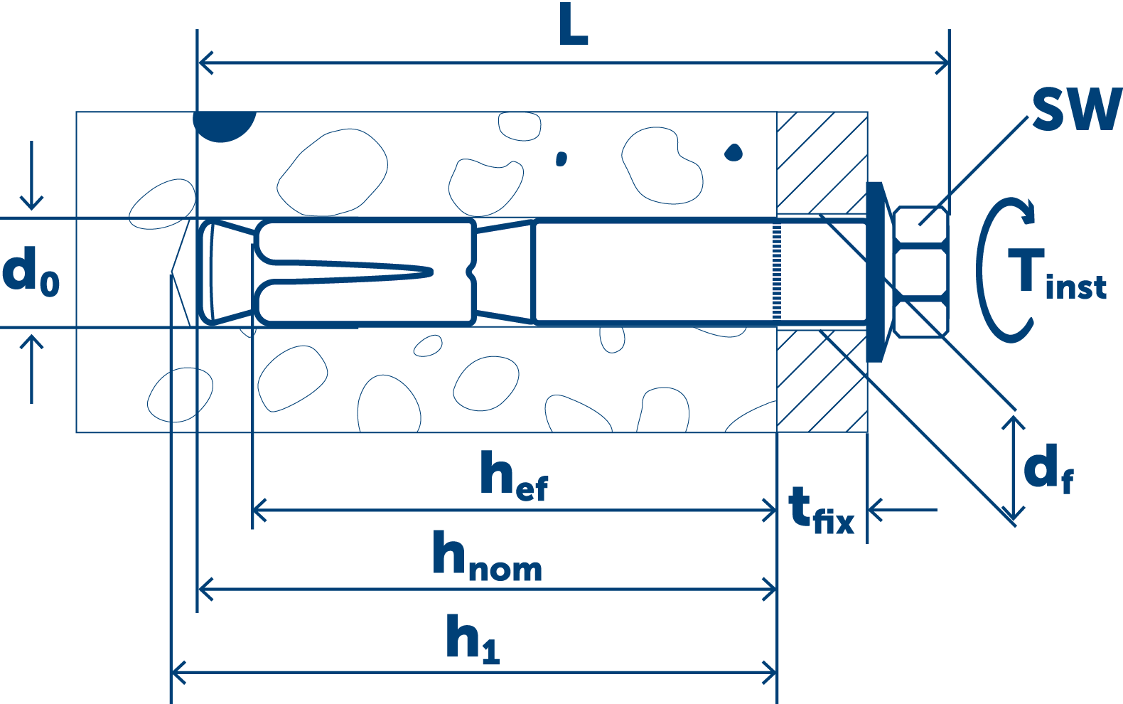 - Расчетная глубина анкеровки (Hnom)114